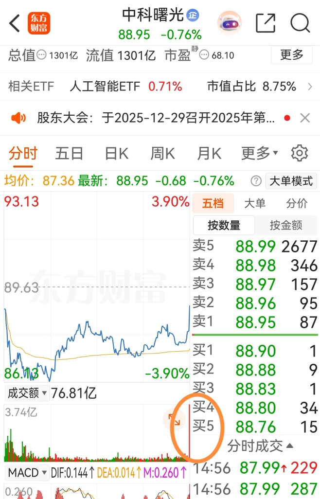 都是一些大聪明!中科曙光入指数,尾盘爆大量搏基金被动买入中科曙光!$中科曙光(SH603019)$