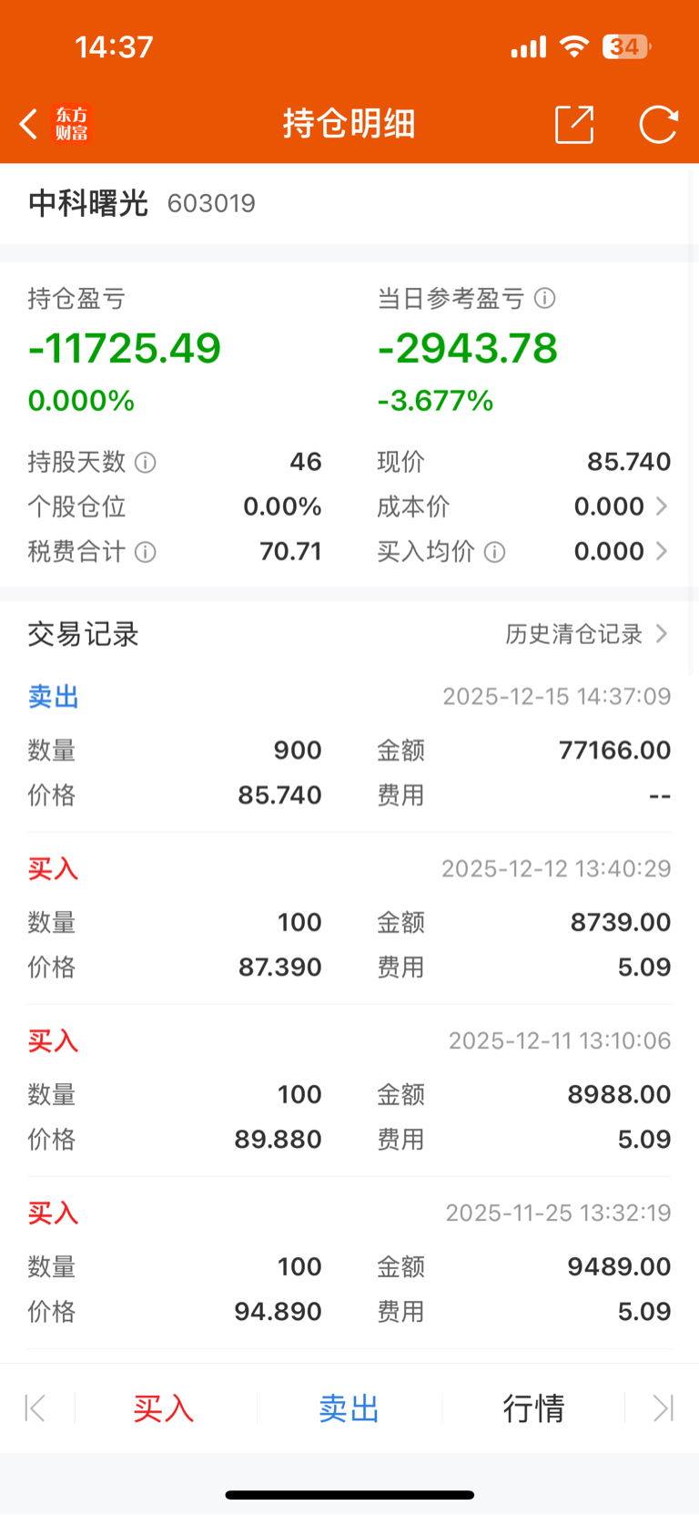 $中科曙光(SH603019)$ 留下的发财 亏13.6个点
