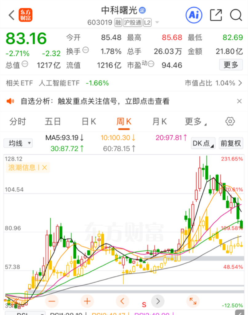 一直想不明白,中科曙光怎么能涨到128元?!没敢碰。
