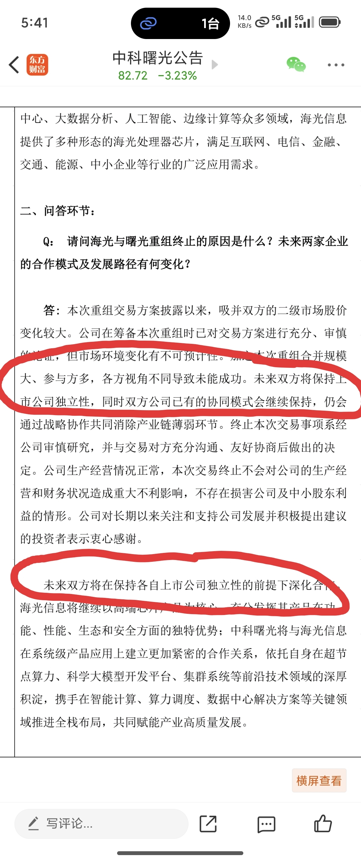 $中科曙光(SH603019)$ 说好的保持独立,能不能不跟海光了