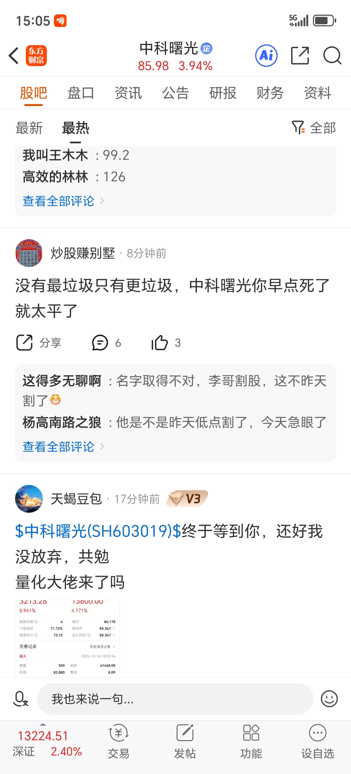 $中科曙光(SH603019)$ 我就不信中科曙光你明天能涨9.19个点