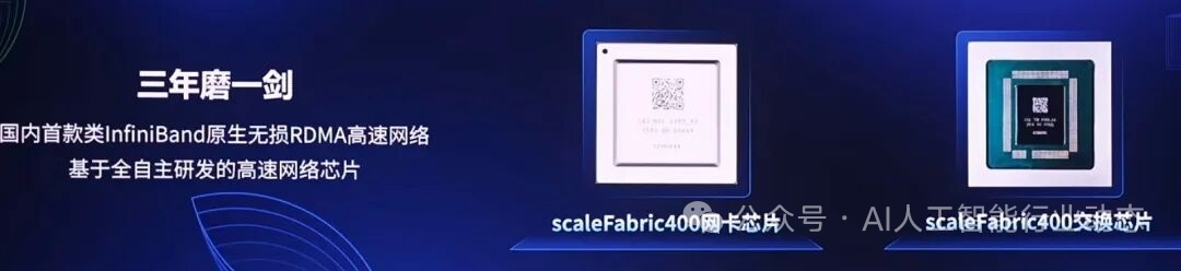 在自主可控领域,如果缺少自研IB网络芯片,这就像是当年我们有原子弹却没有导弹一样,我们做出再牛逼的CPU和GPU,却没有可用的数据交换管路。而这款自研scaleFabric400芯片,解决了万卡集群中有弹无枪的囧境。