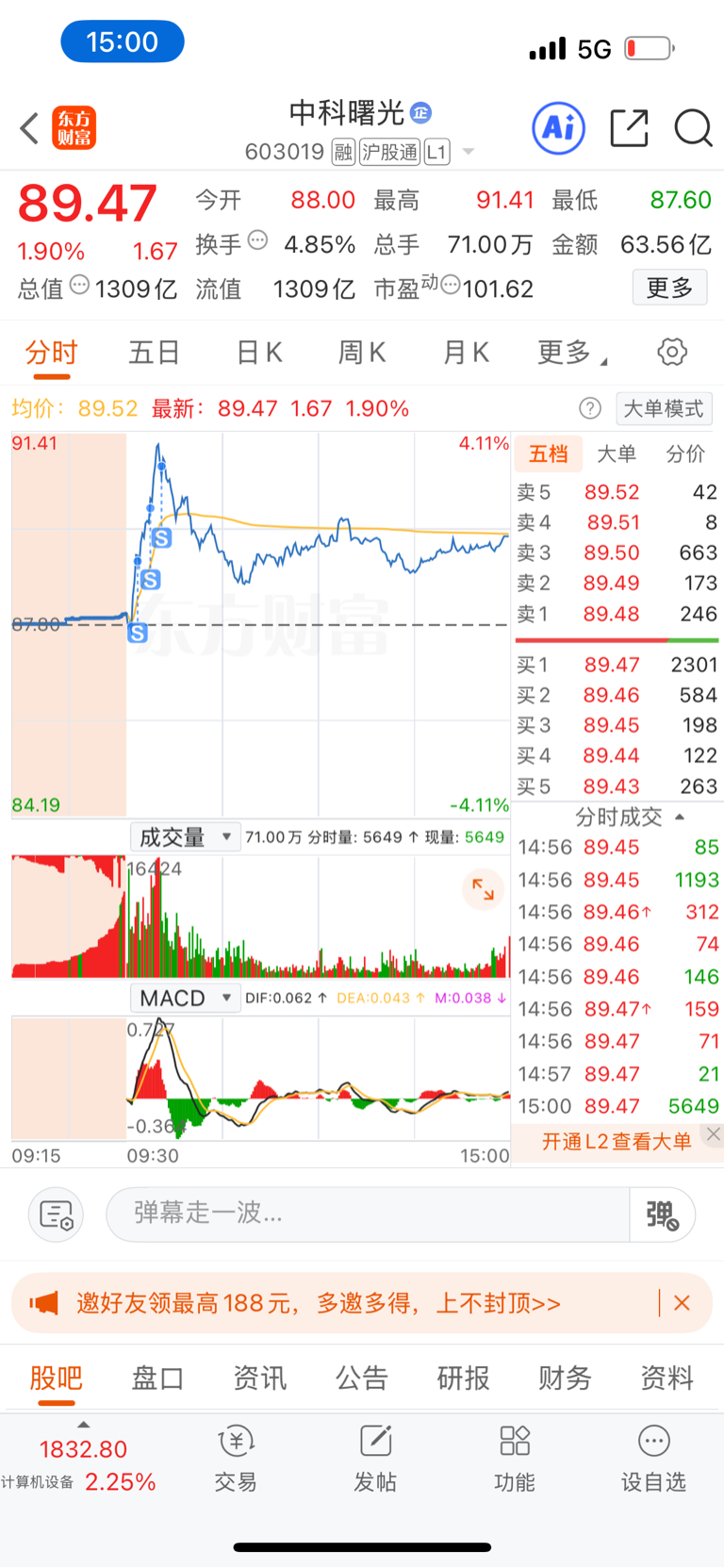 $中科曙光(SH603019)$ 没能全部卖在最高点,