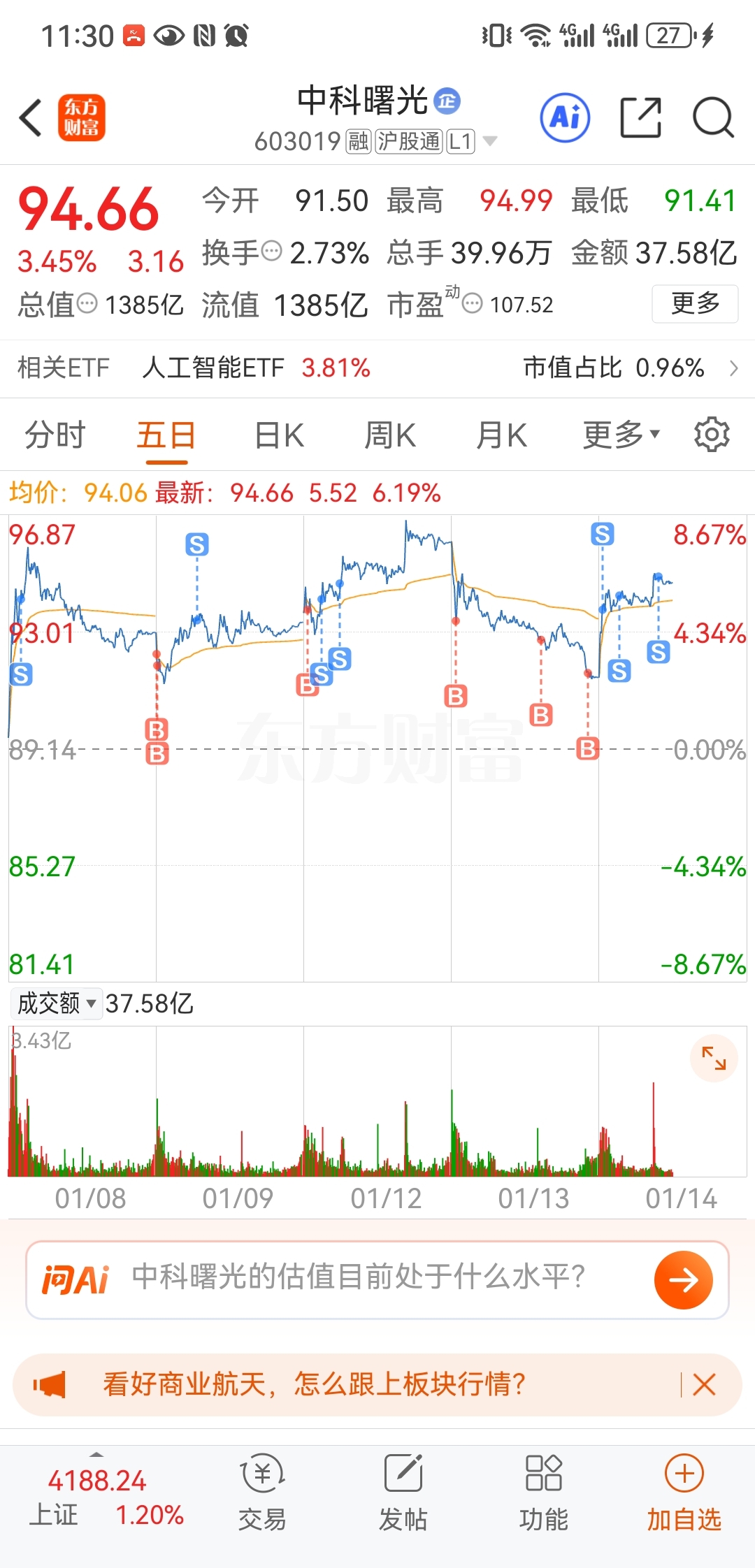 $中科曙光(SH603019)$ 从买的第二天跌停到今天,我终于清仓走人了