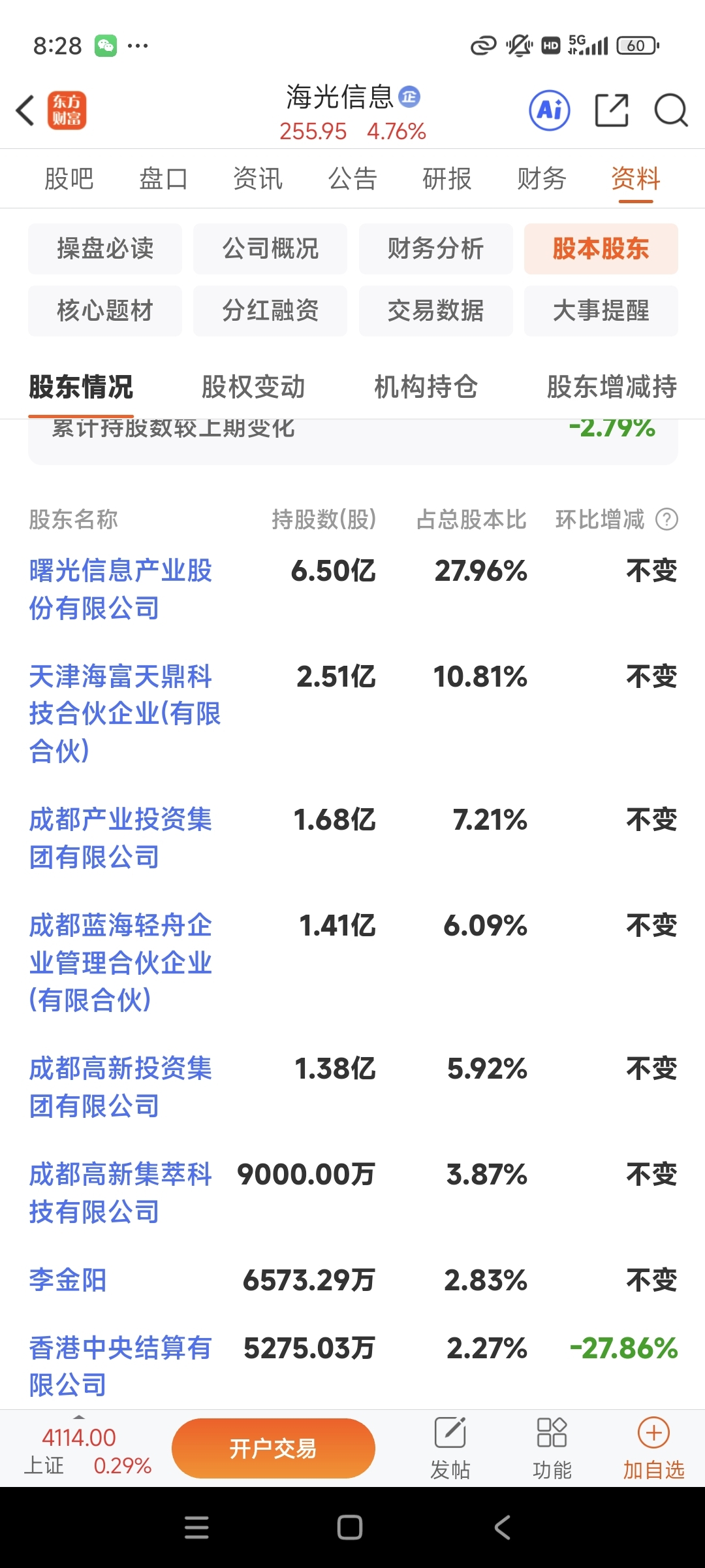 曙光拥有海光28%的股份,海光6000亿市值!那就是1700亿!!!