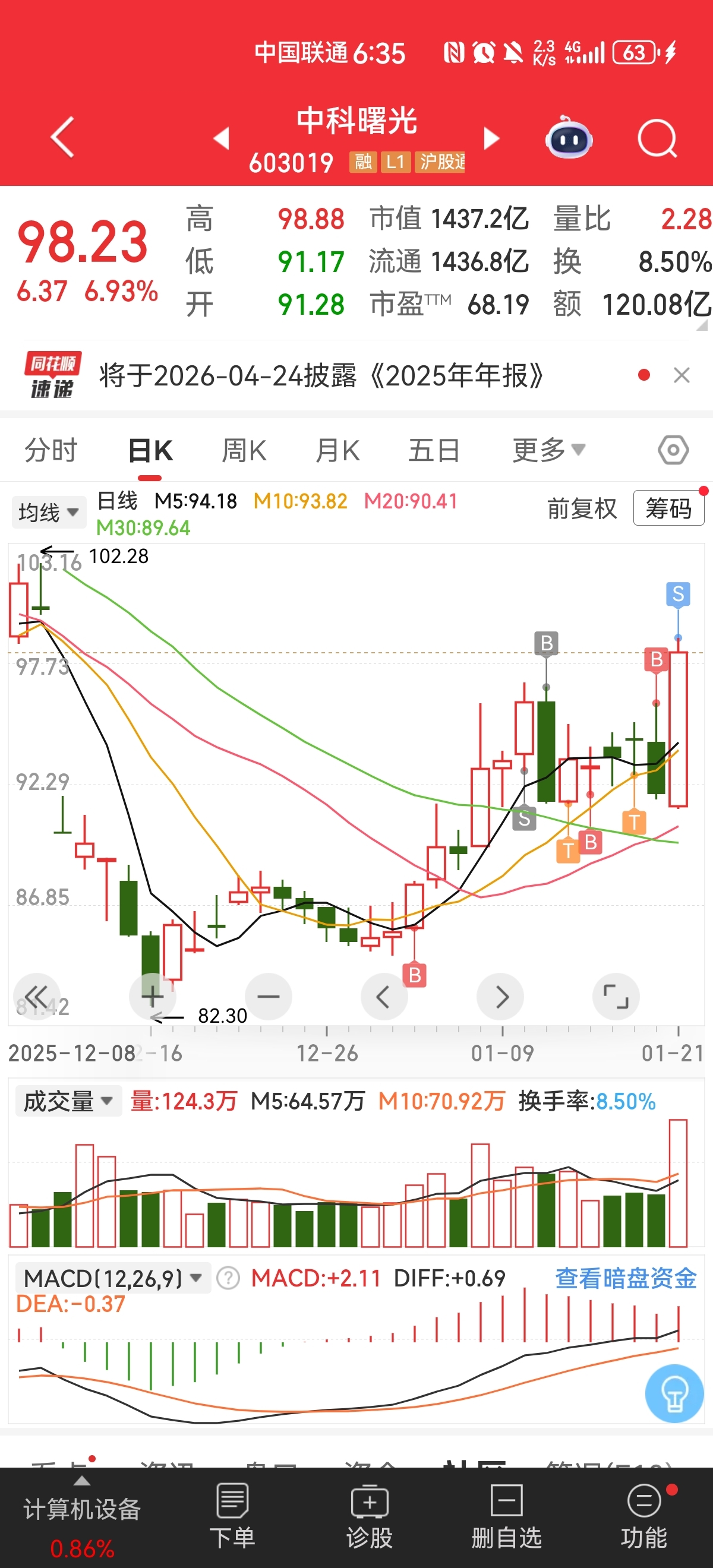 $中科曙光(SH603019)$ 希望明天继续涨,一路抛