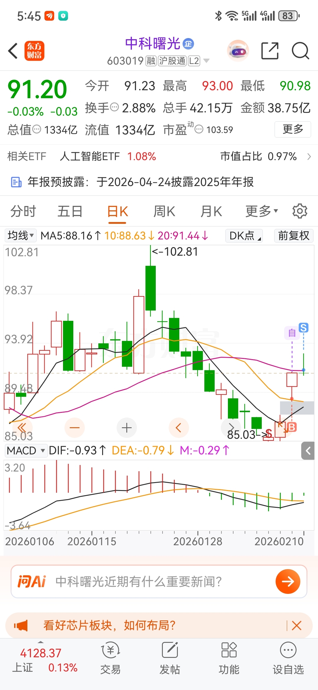 $中科曙光(SH603019)$ 今天最高没卖 但是下午这个走势让我不舒服,卖了 明天看情况