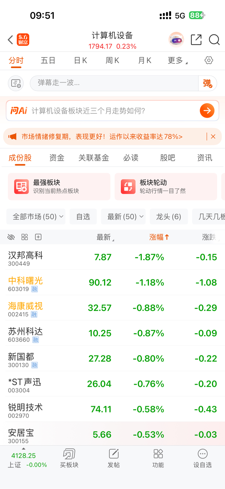$中科曙光(SH603019)$ 逆板块下跌,倒数第二。这波反弹两天就结束了吗?
