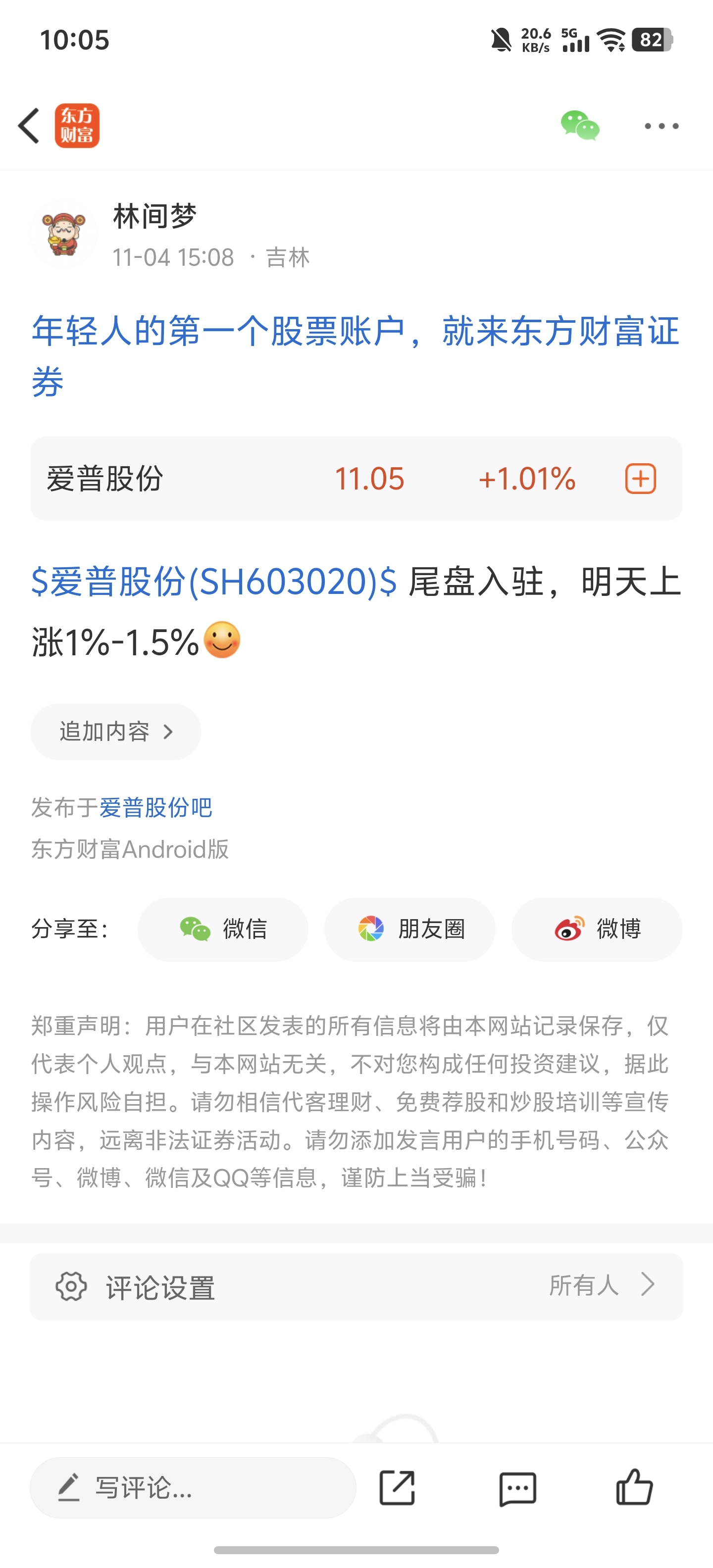温馨提示: 1.根据《证券法》规定,禁止编造、传播虚假信息或者误导性信息,扰乱证券市场;2.用户在本社区发表的所有资料、言论等仅代表个人观点,与本网站立场无关,不对您构成任何投资建议。用户应基于自己的独立判断,自行决定证券投资并承担相应风险。《东方财富社区管理规定》