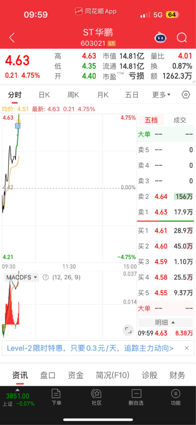 $ST华鹏(SH603021)$ 给个机会,被洗了。