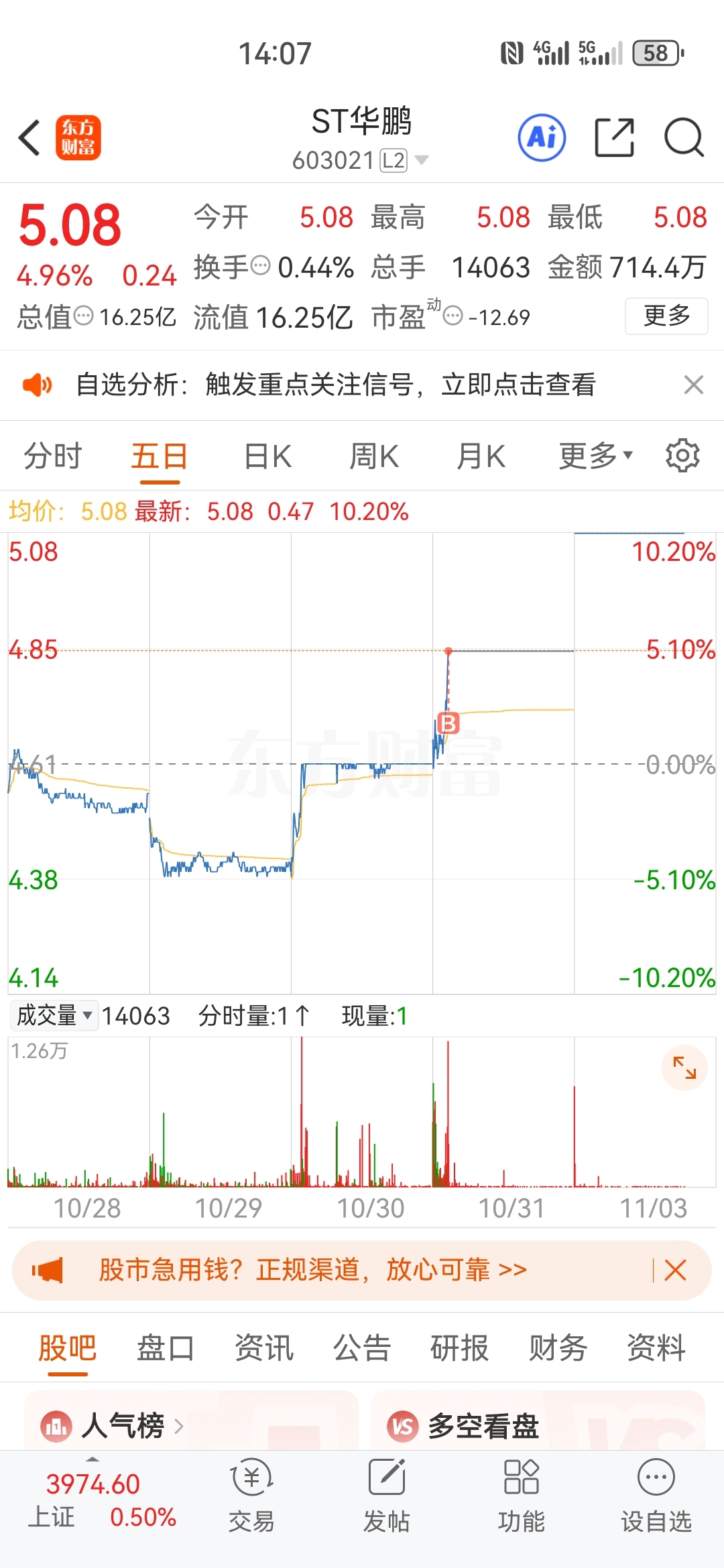 $ST华鹏(SH603021)$ 上周五剩余的资金拿去搞金山办公了,搞到没资金打板华鹏,血亏,只买了5%的仓位,今天清了金山也进不来华鹏了,留好资金看明天有没机会进