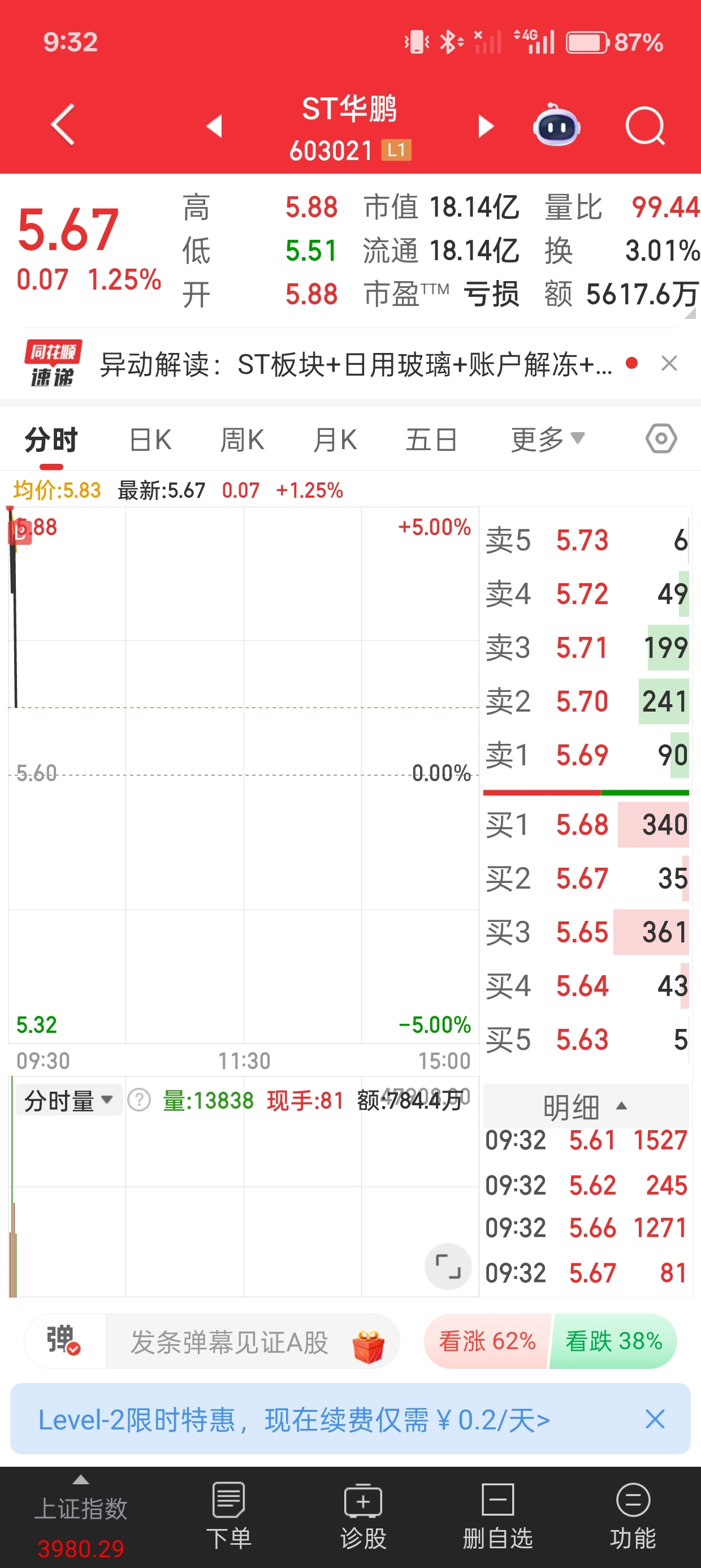 $ST华鹏(SH603021)$ 被我买崩了吗