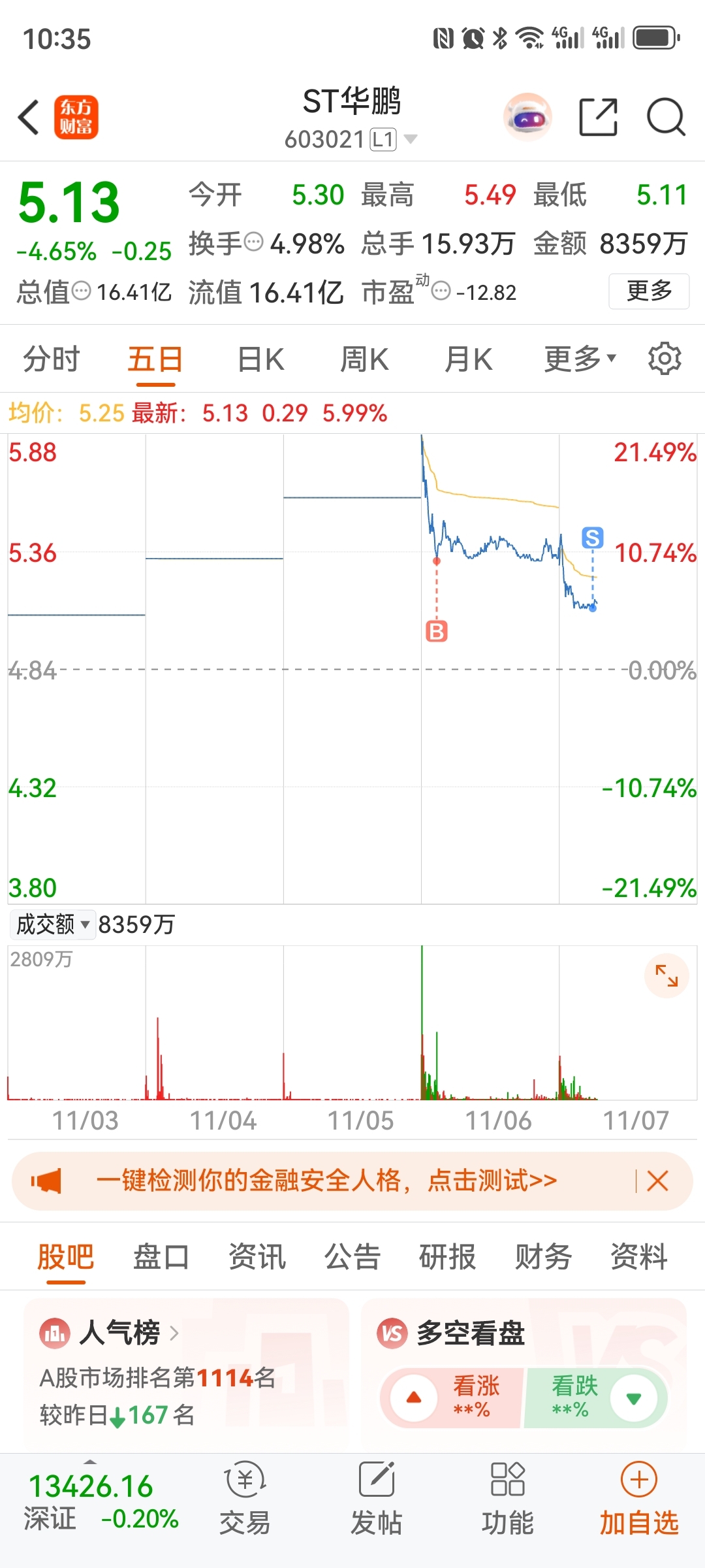 $ST华鹏(SH603021)$ 昨天跌停进来的,今天不及预期,果断止损。