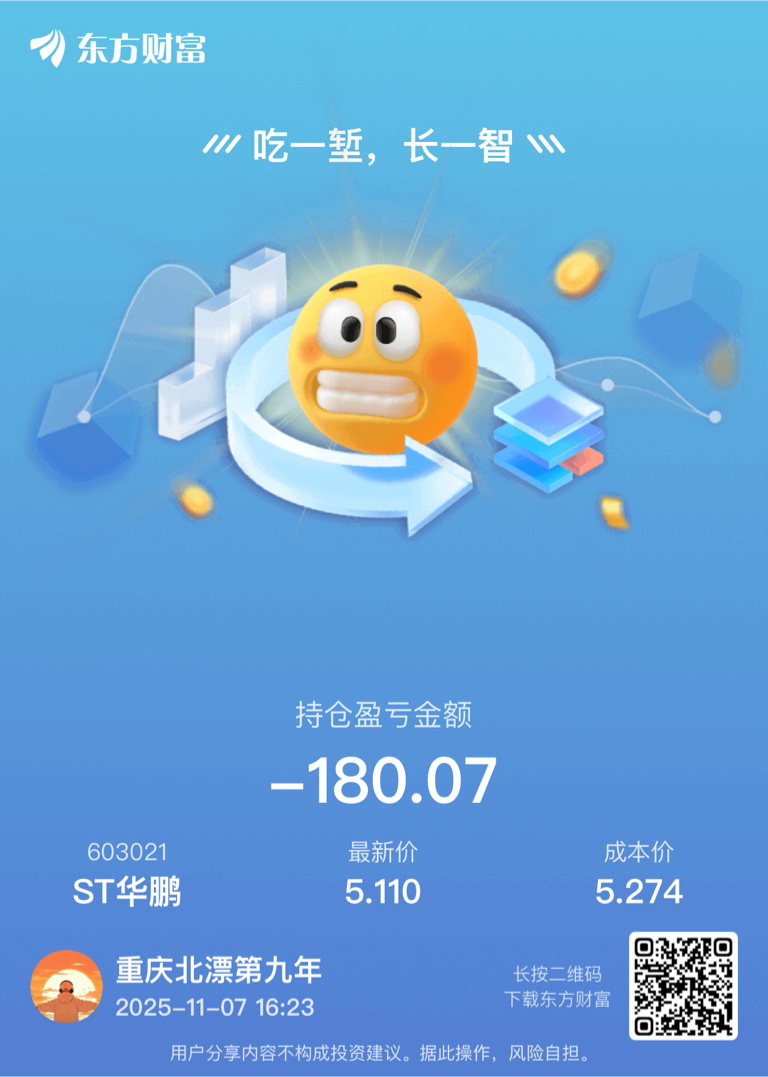 $ST华鹏(SH603021)$ 炒股不是一两天,亏了就认栽