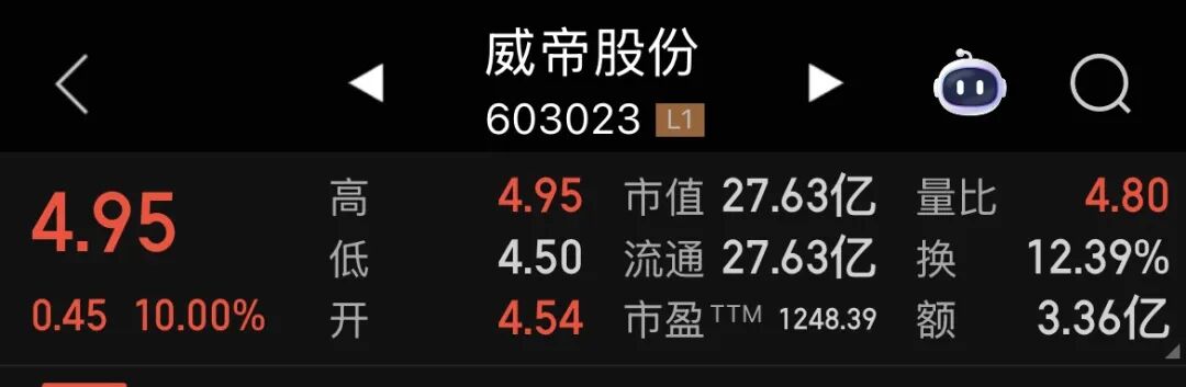 值得关注的是,12月8日,威帝股份股价提前“涨停”,截至收盘报4.95元/股。