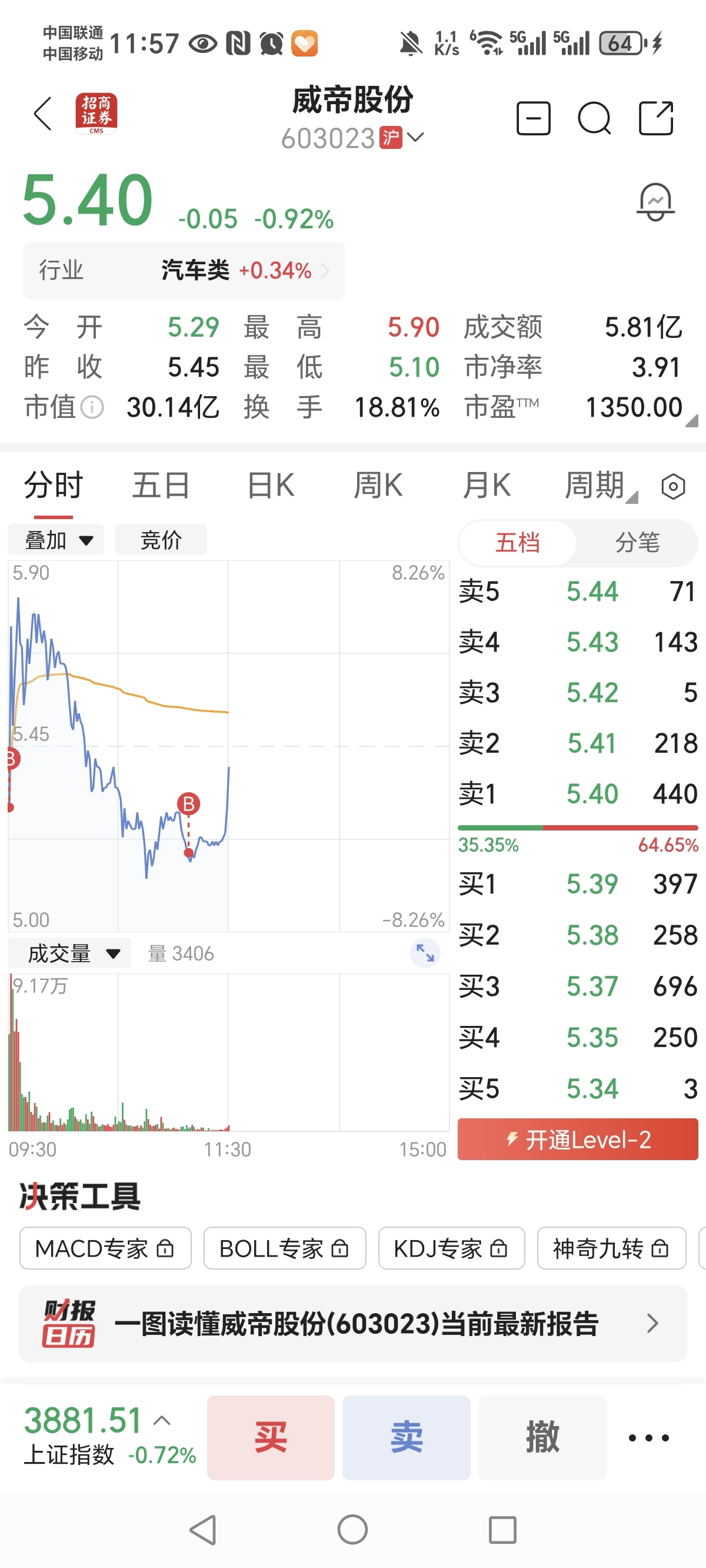 $威帝股份(SH603023)$ 主力在洗盘,别慌