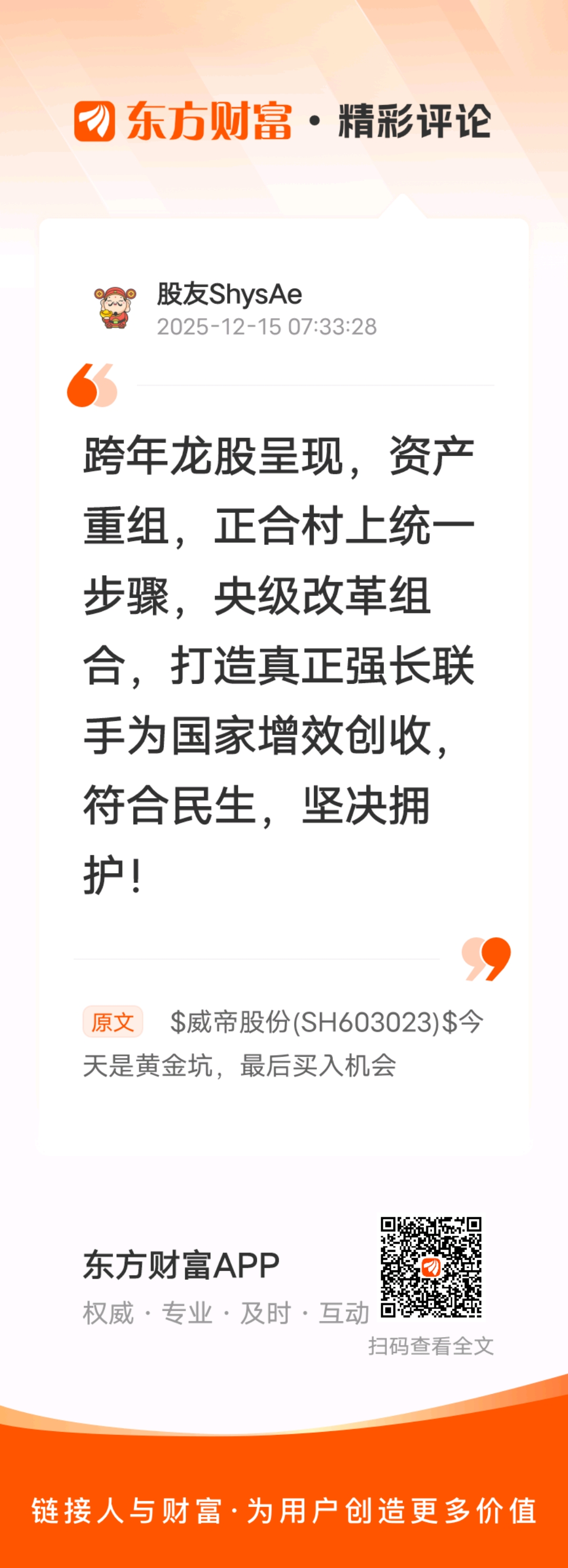 //@股友ShysAe :跨年龙股呈现,资产重组,正合村上统一步骤,央级改革组合,打造真正强长联手为国家增效创收,符合民生,坚决拥护!