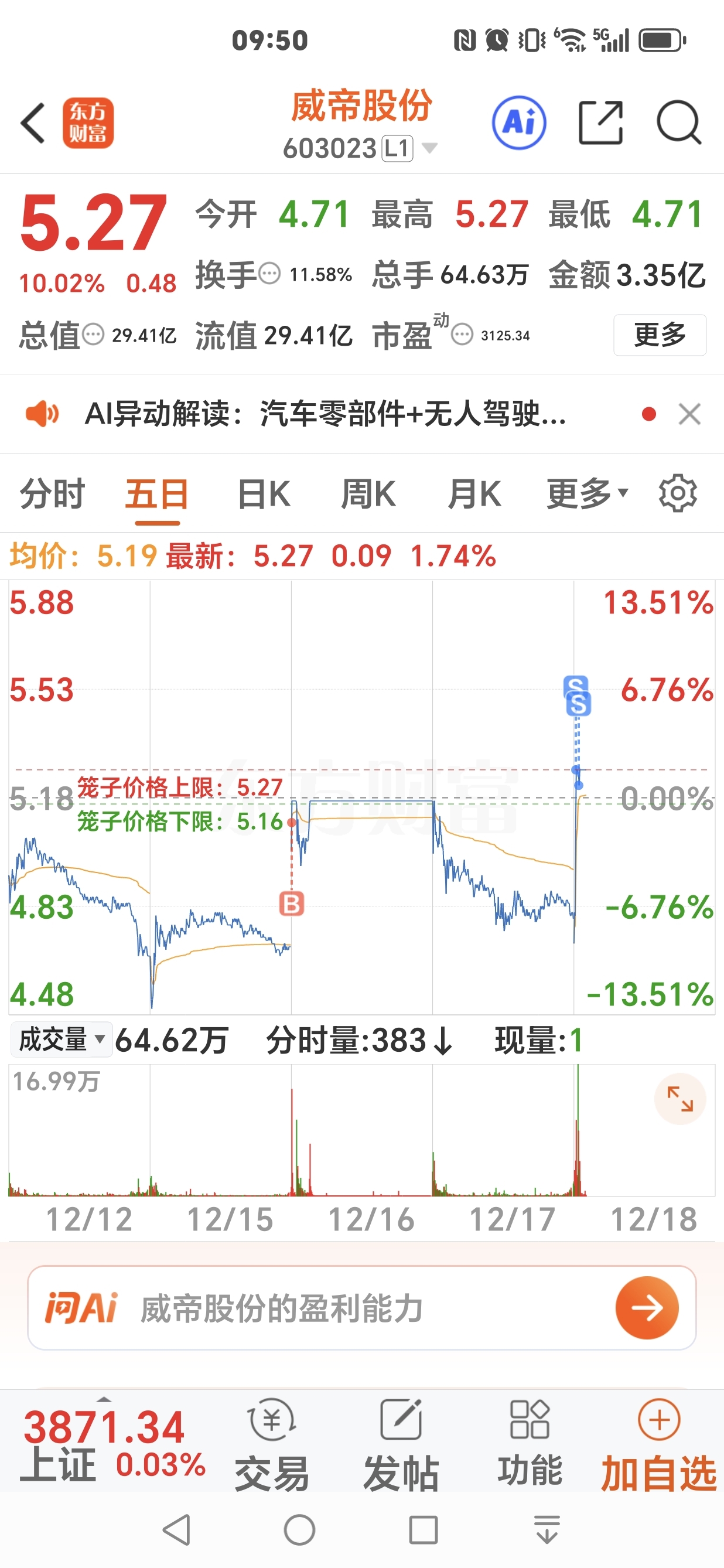 $威帝股份(SH603023)$ 留下利润在里奔跑吧!