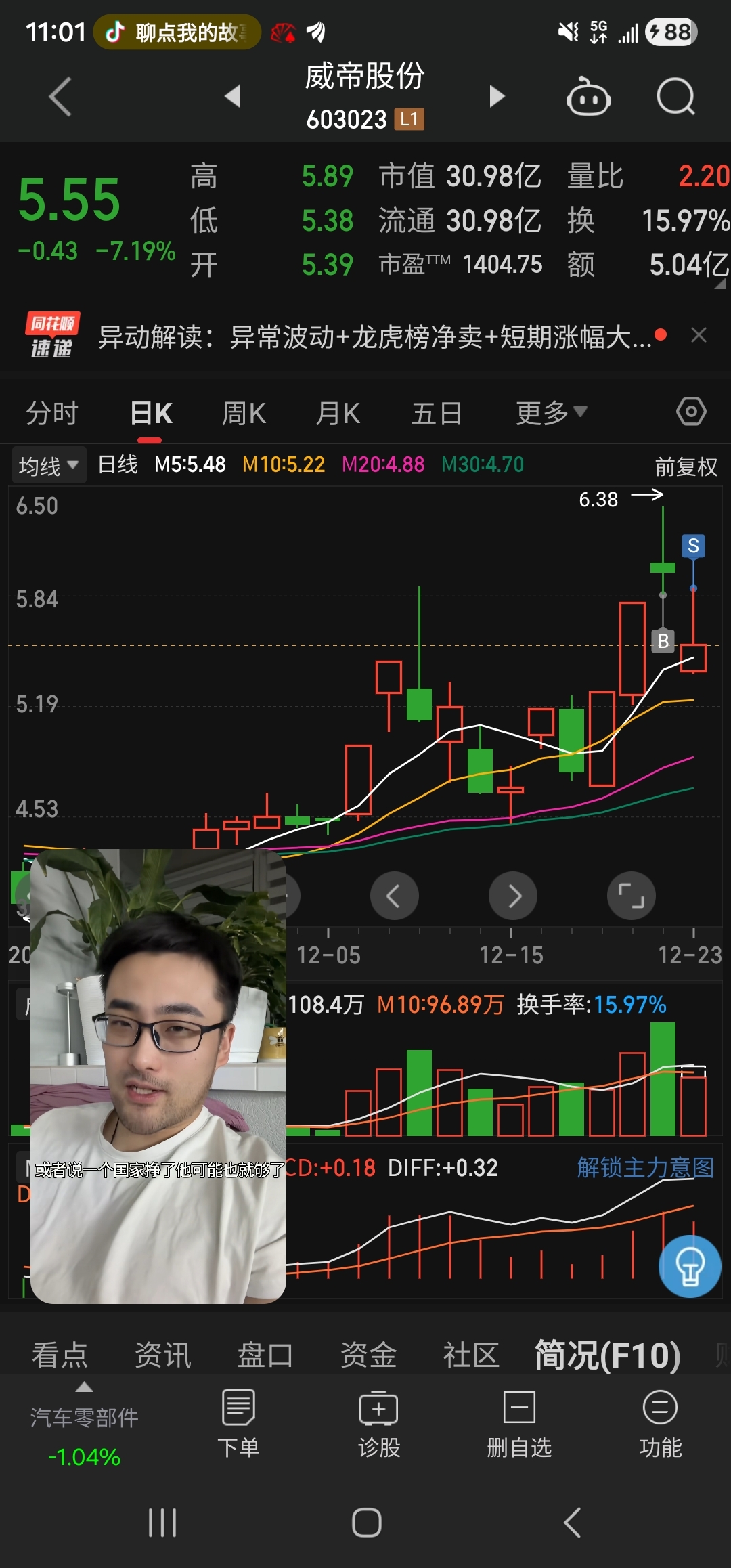 $威帝股份(SH603023)$ 成功跑出来了