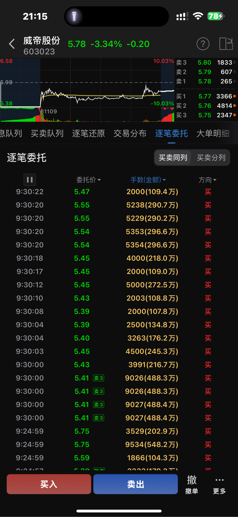 $威帝股份(SH603023)$ 买单那么多。 打压吸筹吗