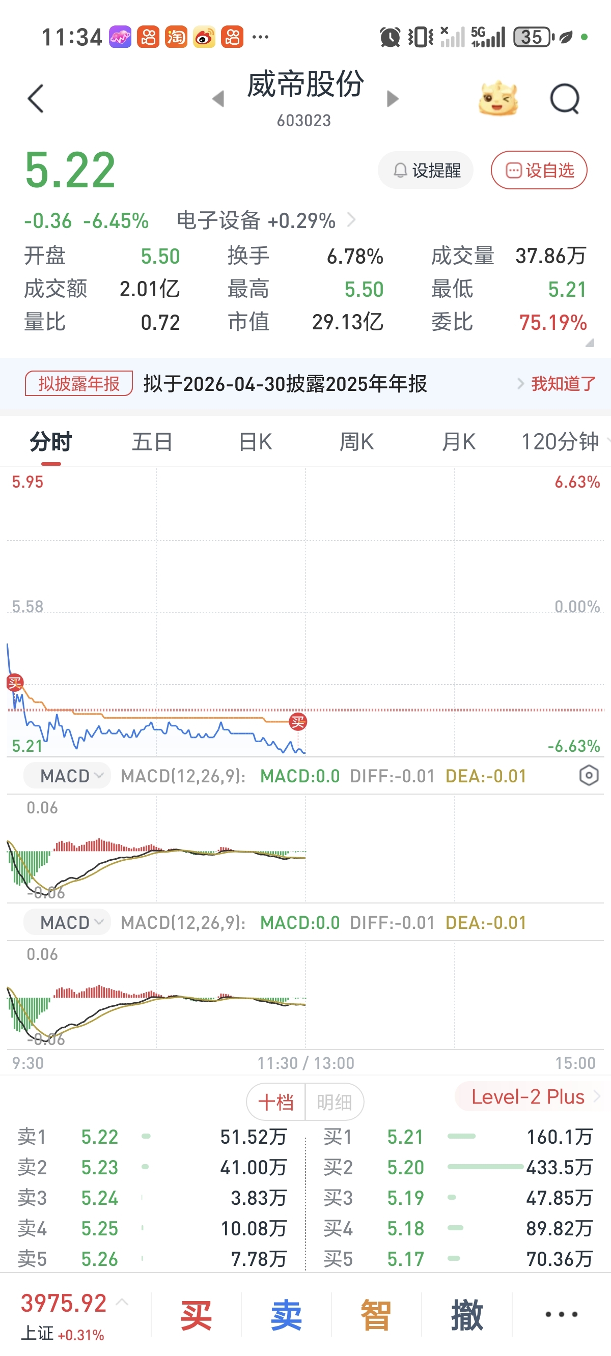 $威帝股份(SH603023)$ 被动补仓,希望下午能回本
