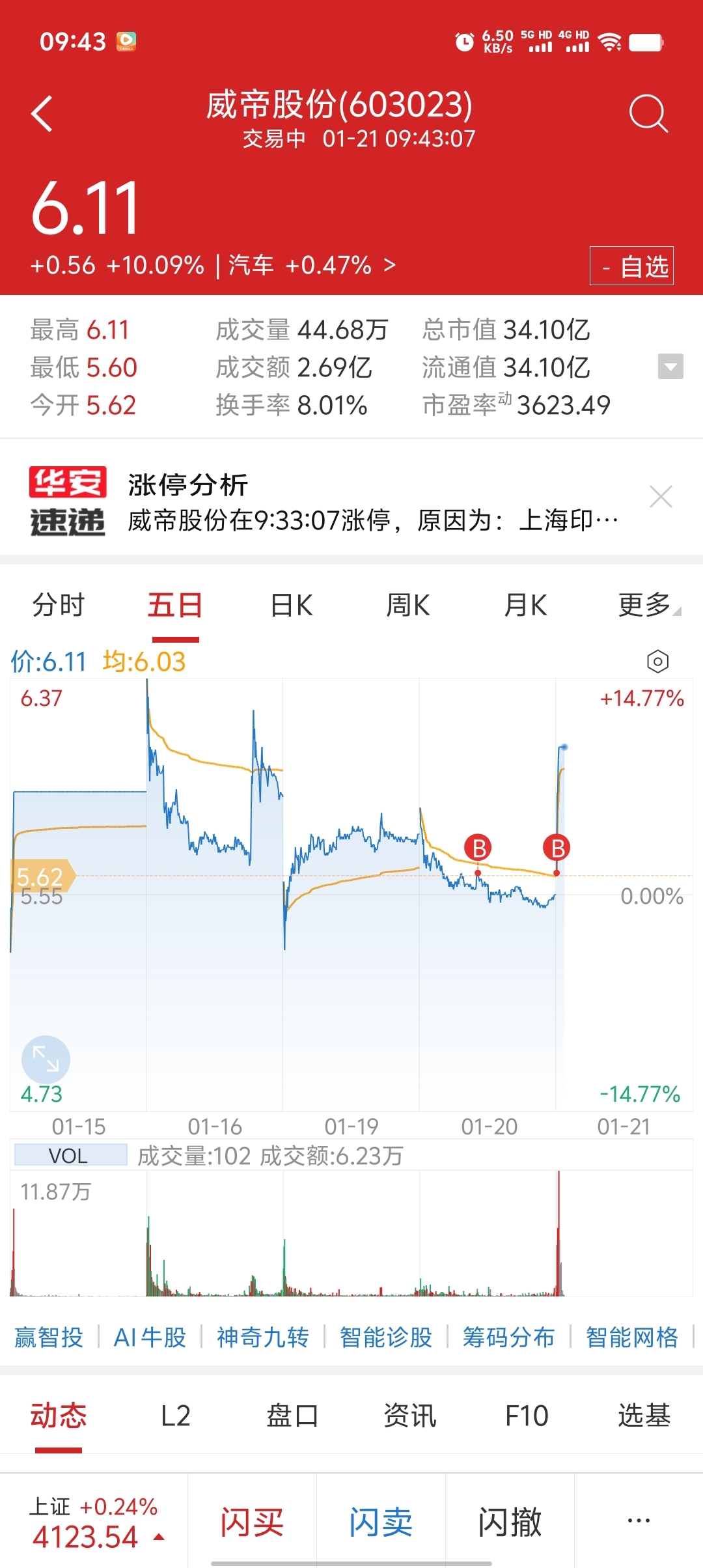 $威帝股份(SH603023)$ 今天补仓了