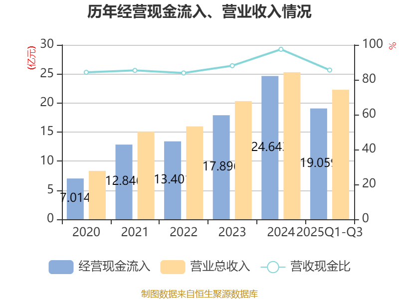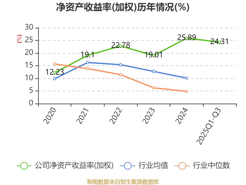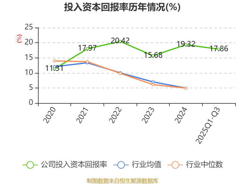盈利能力方面, 2025年前三季度公司加权平均净资产收益率为24.31%,同比上升2.5个百分点。公司2025年前三季度投入资本回报率为17.86%,较上年同期上升1.6个百分点。