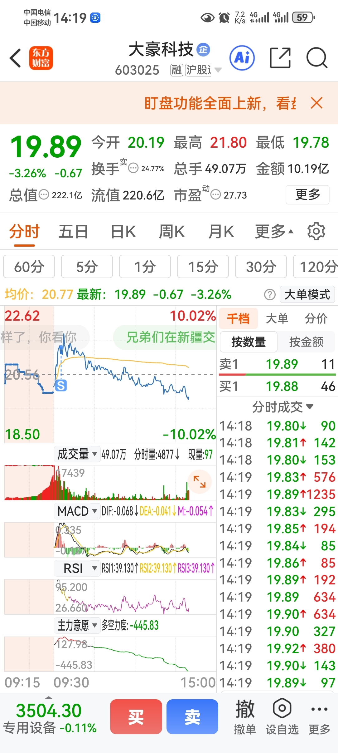 $大豪科技(SH603025)$ 早上卖的,也没想到跌得这么狠