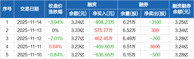 大豪科技:融资净偿还898.23万元,融资余额3.24亿元(11-14)