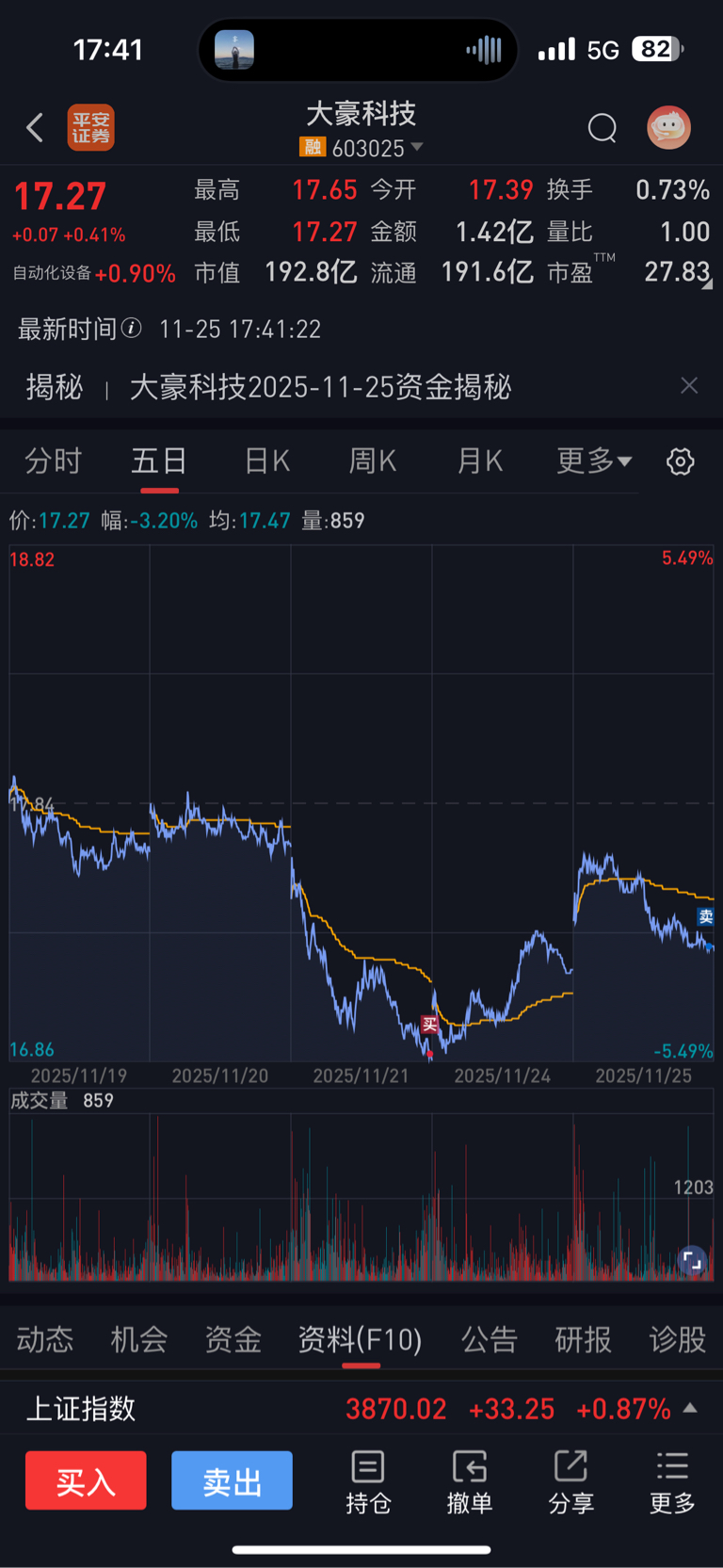 $大豪科技(SH603025)$ 格局到尾盘走了