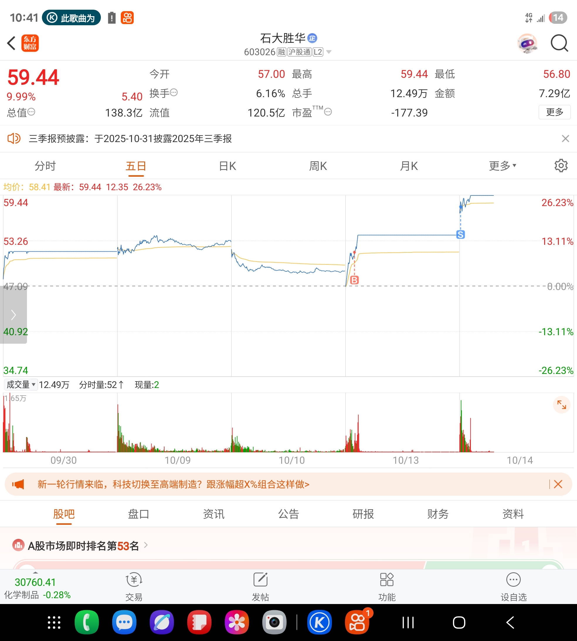 $石大胜华(SH603026)$ 难搞哦