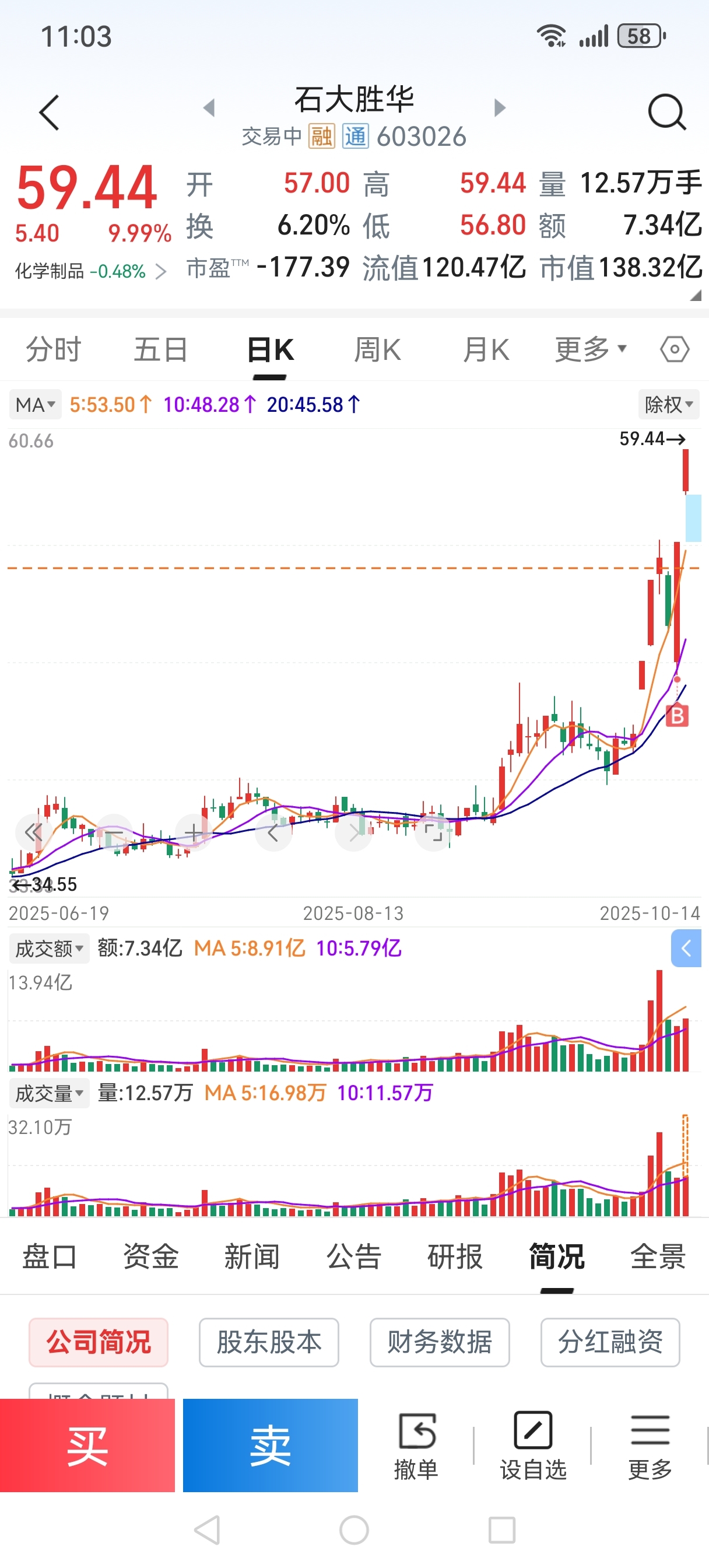 $石大胜华(SH603026)$ 昨天第一次买。啥时候卖老铁们给个建议