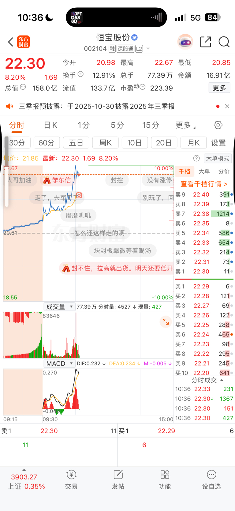 温馨提示: 1.根据《证券法》规定,禁止编造、传播虚假信息或者误导性信息,扰乱证券市场;2.用户在本社区发表的所有资料、言论等仅代表个人观点,与本网站立场无关,不对您构成任何投资建议。用户应基于自己的独立判断,自行决定证券投资并承担相应风险。《东方财富社区管理规定》
