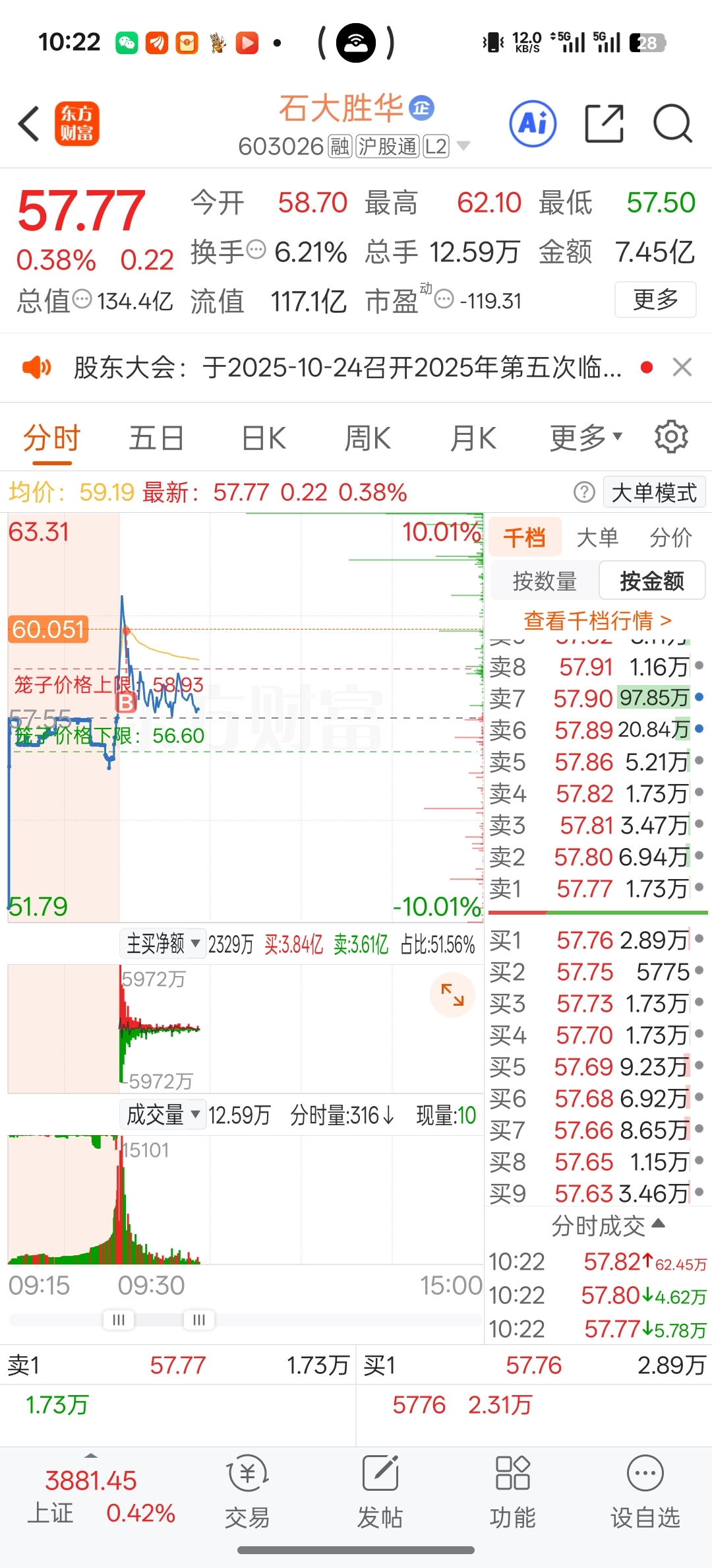 $石大胜华(SH603026)$ 60挂在山顶了,家人们