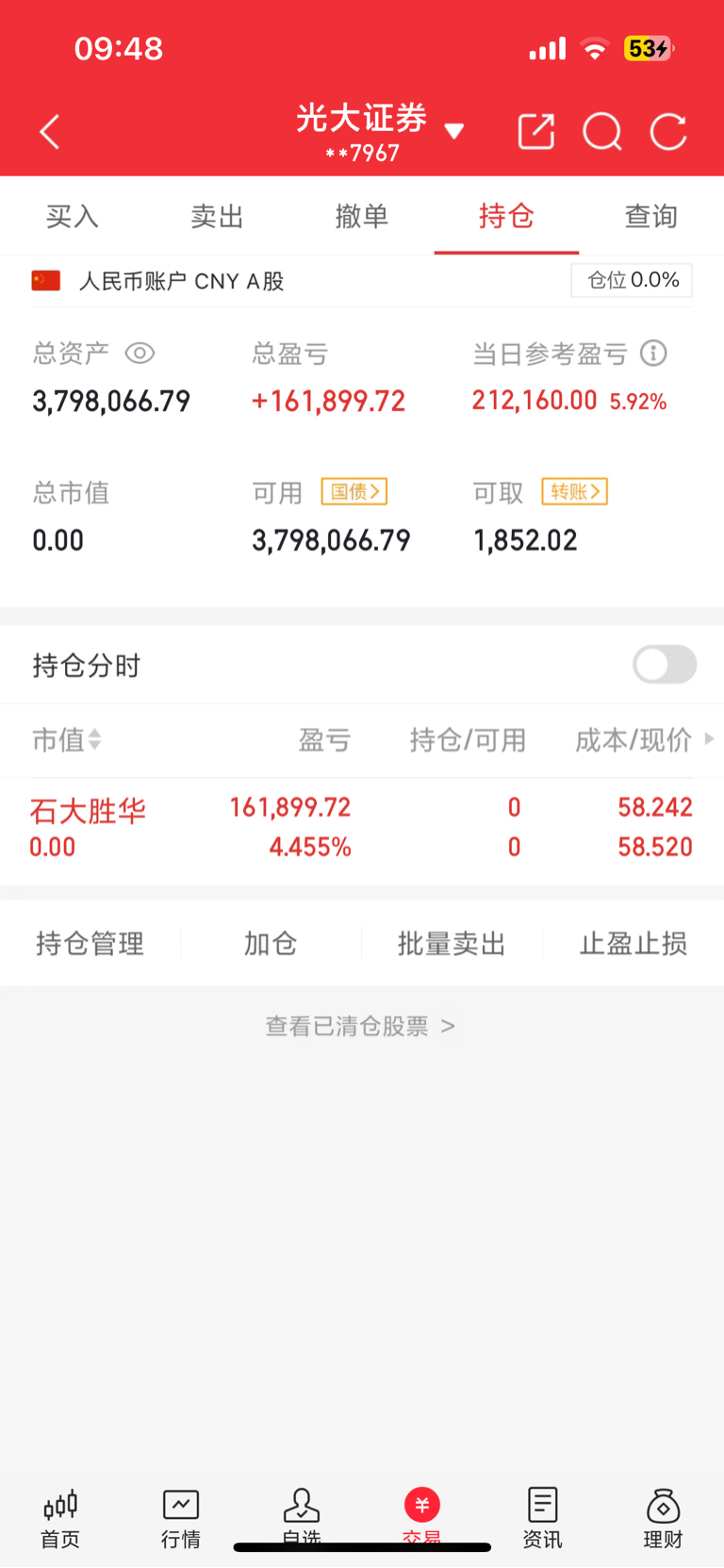 $石大胜华(SH603026)$ 祝留下来的各位发财,还有,潇洒哥再次声明,我只做好我认知的交易,即使我就是模拟盘都好,我能盈利就行,对你有帮助你就多看一下,如果没有就把我拉黑即可,准备转场咯,大家跟好节奏,评论888