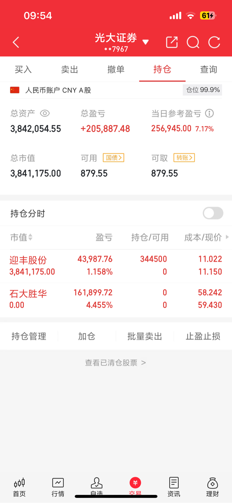 $石大胜华(SH603026)$ 兄弟姐妹们,还没给潇洒哥点关注的点个关注,转场换标的又要靠缘分刷到了,周四实盘标的进场$迎丰股份(SH605055)$