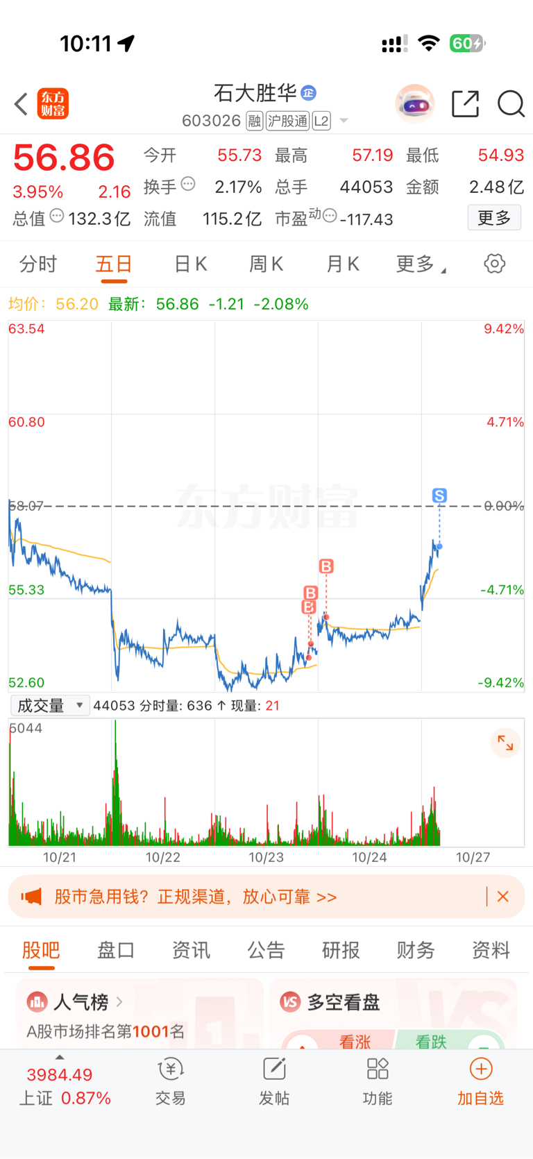 $石大胜华(SH603026)$ 先出一半
