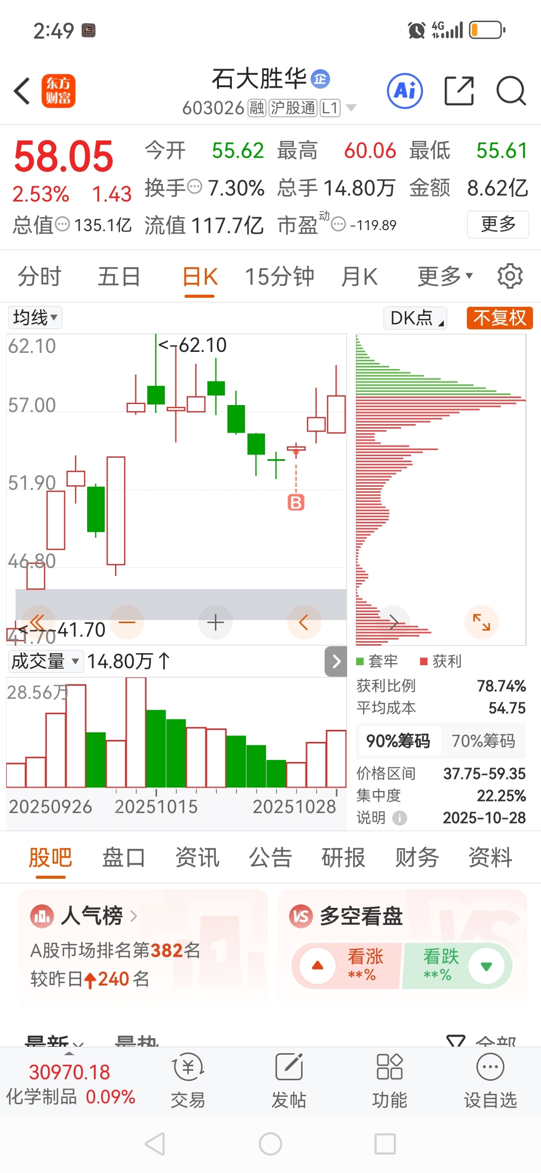 $石大胜华(SH603026)$ 这要不要卖,感觉明天还能涨。