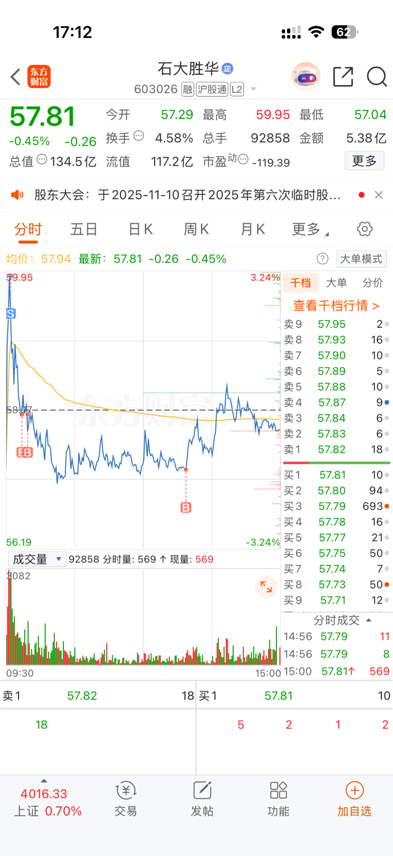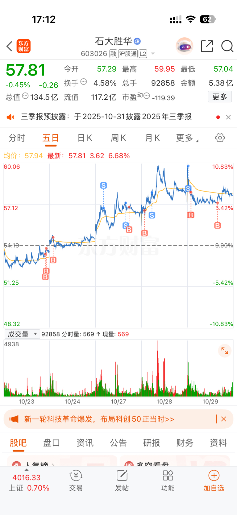 $石大胜华(SH603026)$ 大哥,明天发力吧