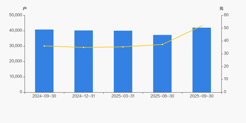 2024年9月30日至今,公司股东户数有所增长,区间涨幅为2.94%。2024年9月30日至2025年9月30日区间股价上涨43.33%。