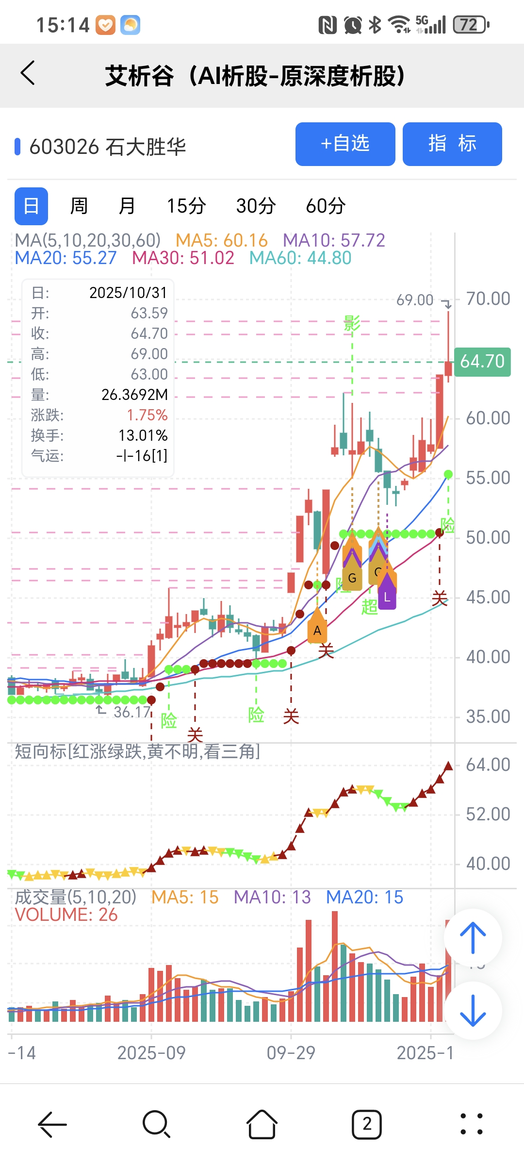 图中A、B、G、L 关注标记是对应AI选股模型当天下午2点多给出。