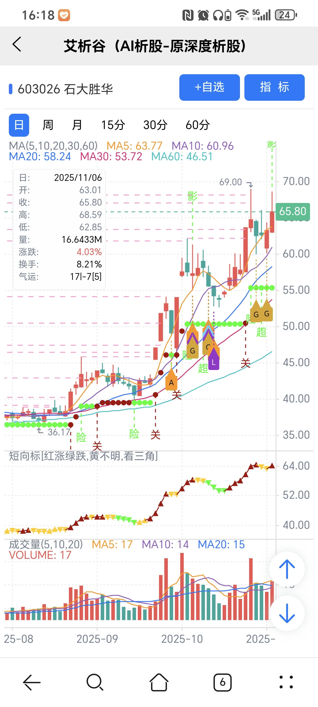 图中A、B、G、L 关注标记是对应AI选股模型当天下午2点多给出。