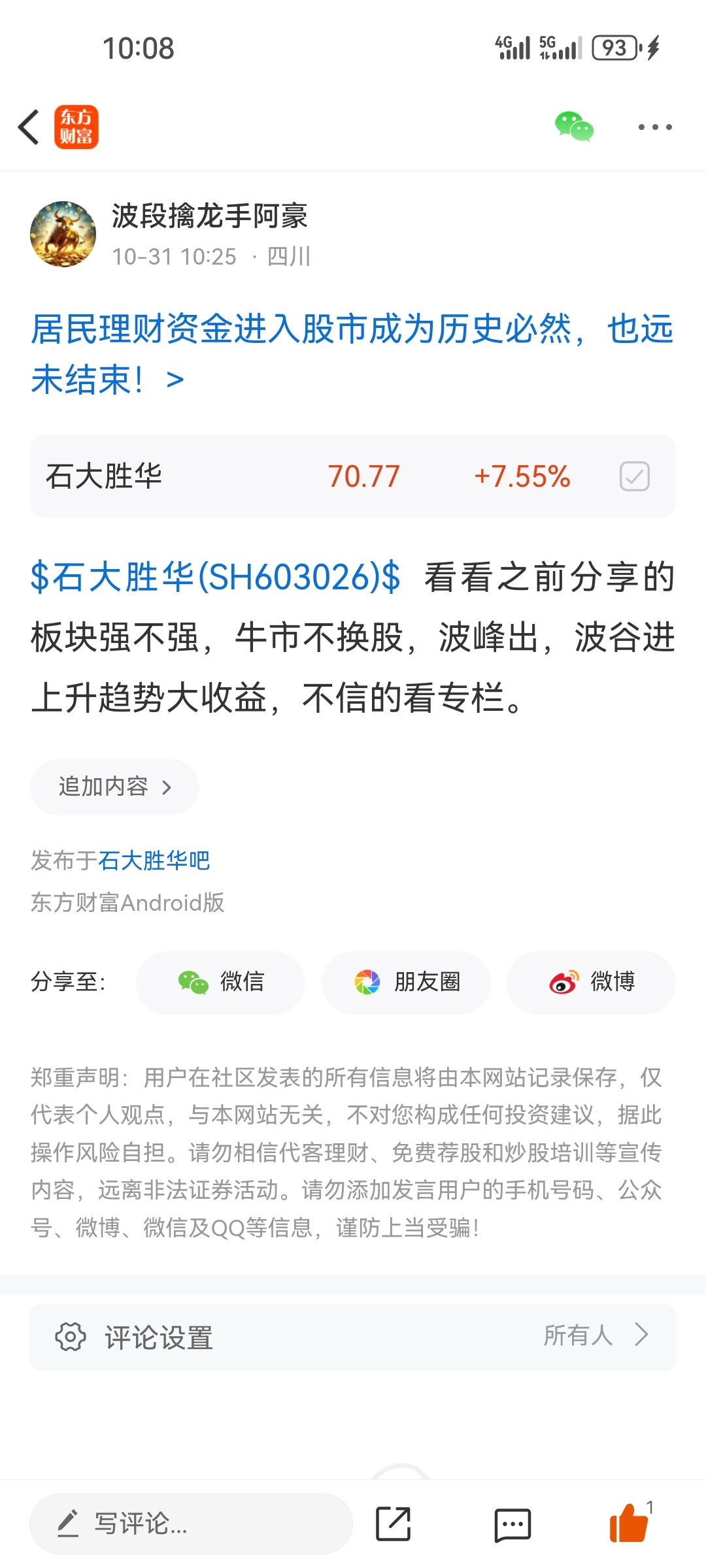 温馨提示: 1.根据《证券法》规定,禁止编造、传播虚假信息或者误导性信息,扰乱证券市场;2.用户在本社区发表的所有资料、言论等仅代表个人观点,与本网站立场无关,不对您构成任何投资建议。用户应基于自己的独立判断,自行决定证券投资并承担相应风险。《东方财富社区管理规定》