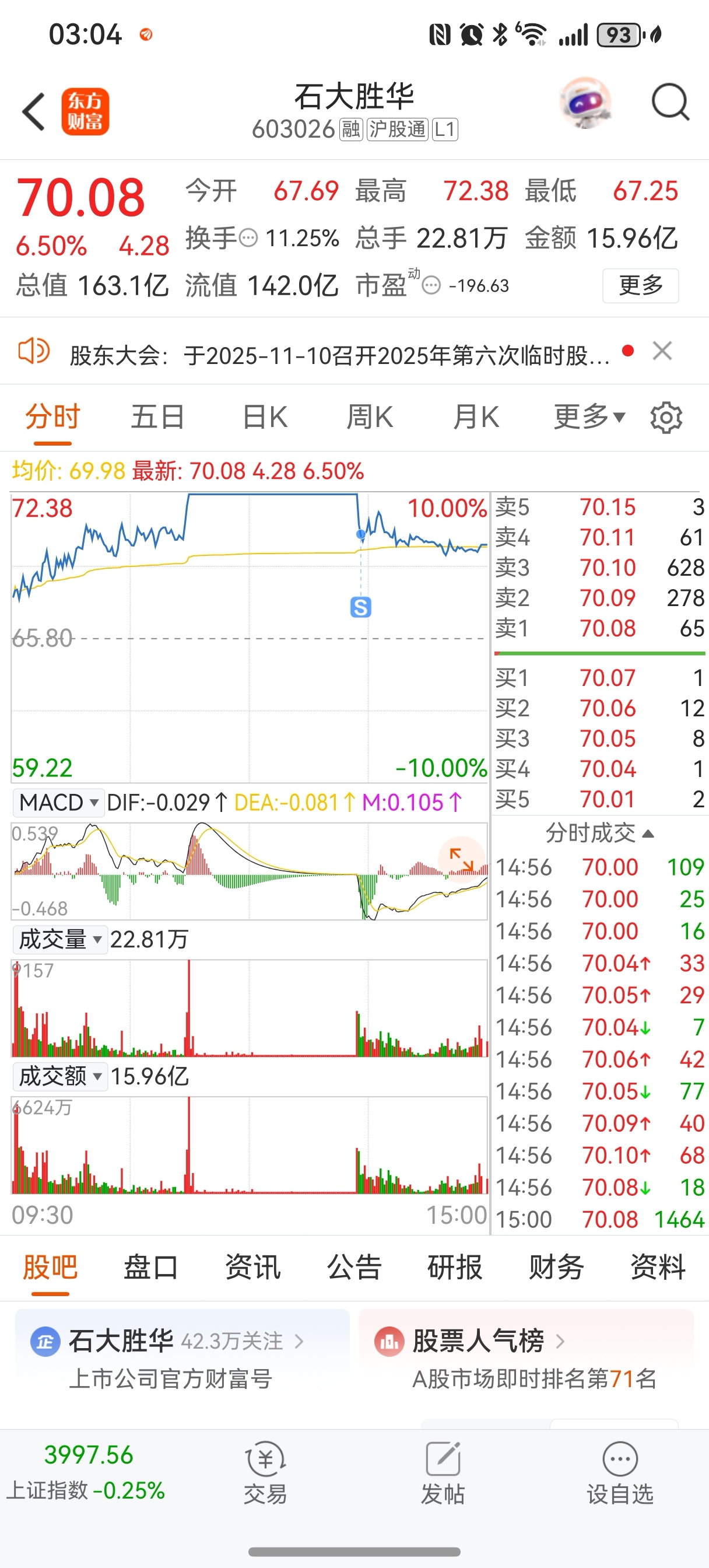 $石大胜华(SH603026)$ 好家伙,还好我设置了炸板卖出条件单