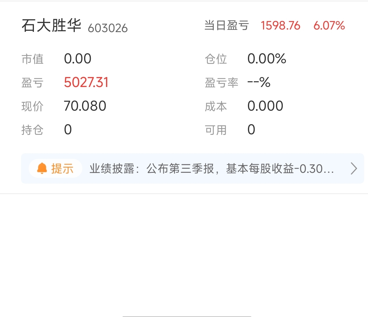 $石大胜华(SH603026)$ 撤了,我得目标就是破69。不贪心,见好就收,24个点。