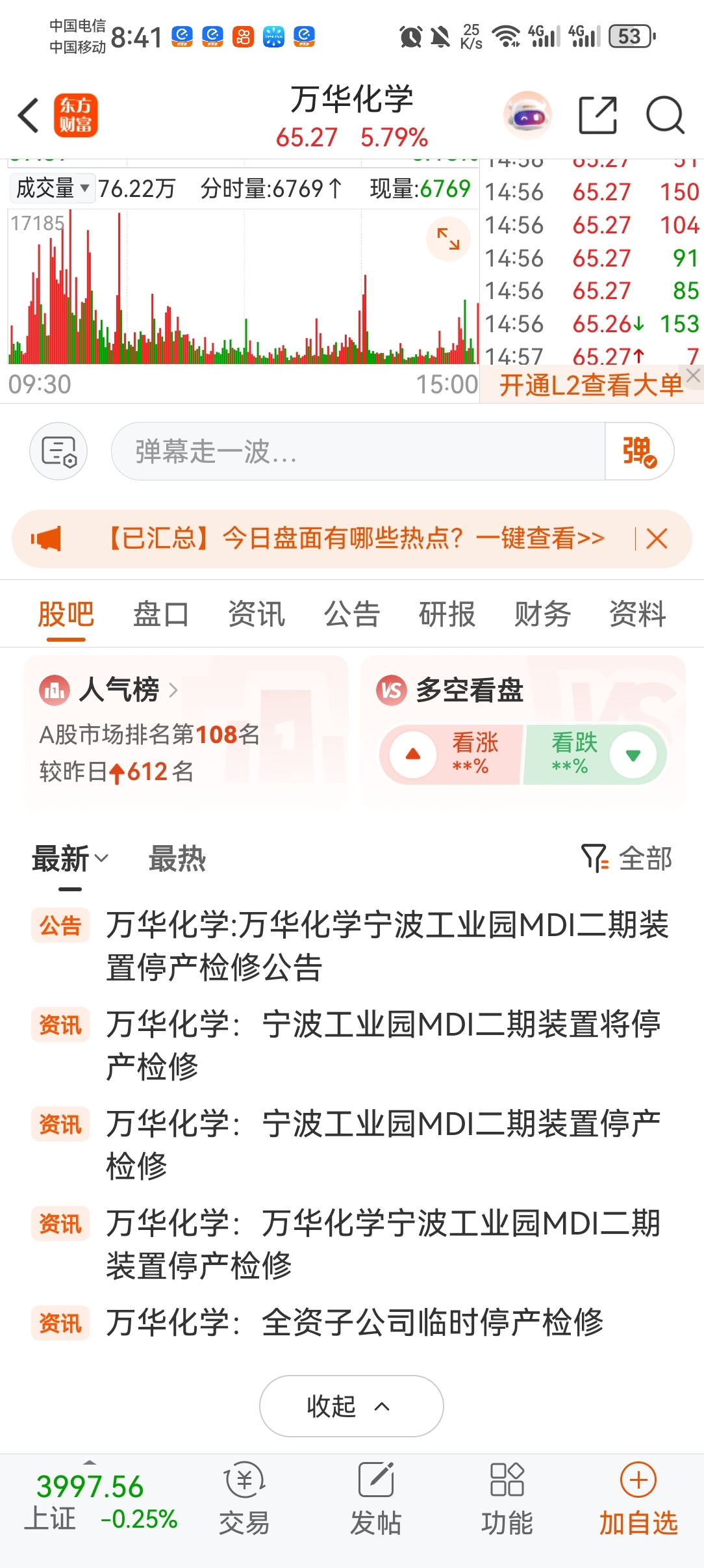 又是利好,万华化学二期停工,利空万华化学利好石大胜华