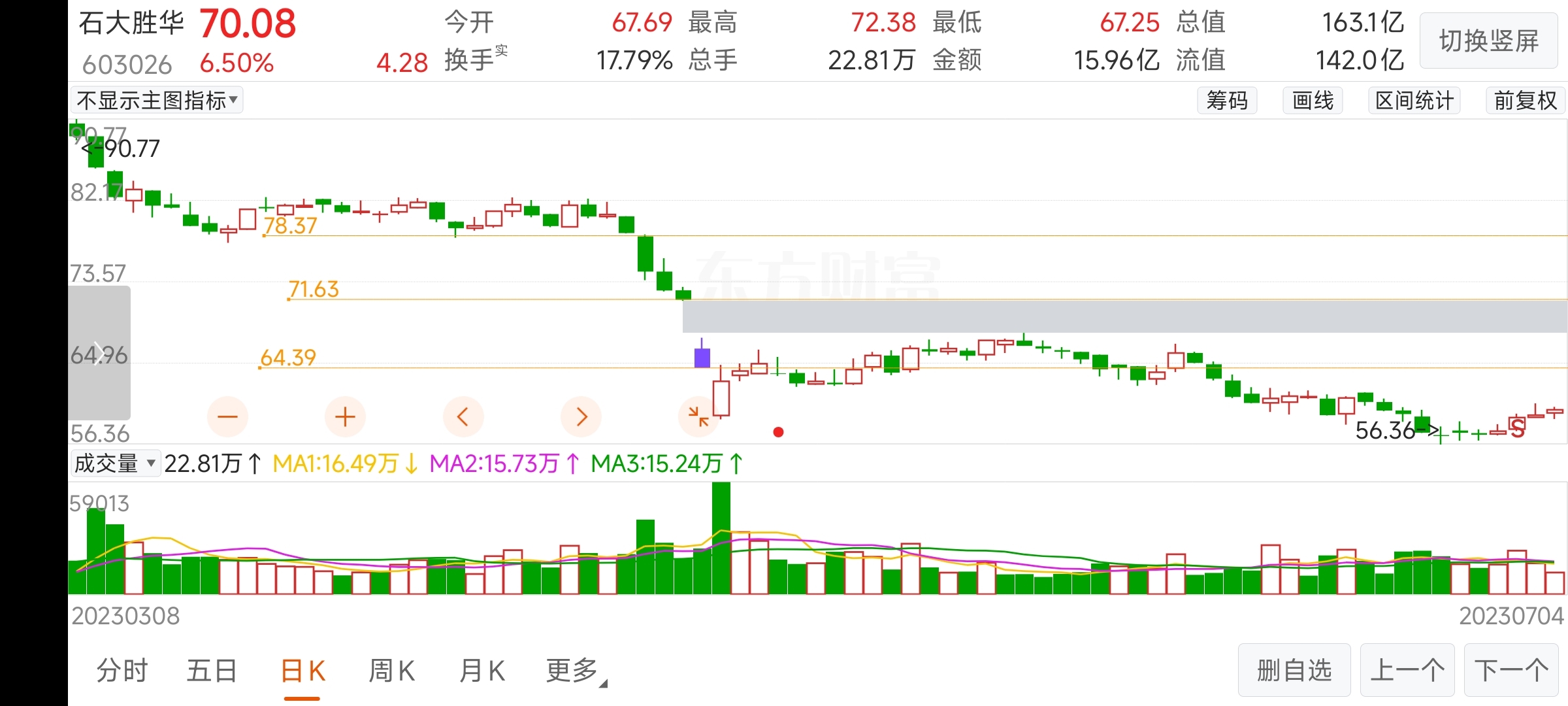 为啥会炸板,原因要从历史里找。。。跳空阴的跌停板,这种大阴,通常都会有压力,更何