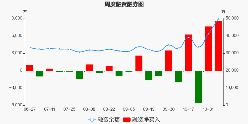 石大胜华本周(2025/11/03-2025/11/07)累计涨幅达8.32%,截至11月7日最新股价报收70.08元。从增量上来看,11月3日至11月7日融资买入交易规模5.75亿元,融资偿还规模4.89亿元,期内融资净买入8625.88万元。从存量上来看,截止11月9日,石大胜华融资融券余额5.02亿元,其中融资余额规模4.98亿元,融券余额规模405.76万元。