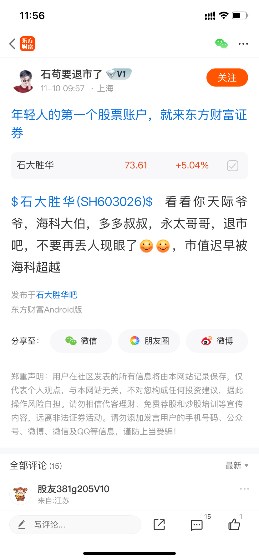 温馨提示: 1.根据《证券法》规定,禁止编造、传播虚假信息或者误导性信息,扰乱证券市场;2.用户在本社区发表的所有资料、言论等仅代表个人观点,与本网站立场无关,不对您构成任何投资建议。用户应基于自己的独立判断,自行决定证券投资并承担相应风险。《东方财富社区管理规定》