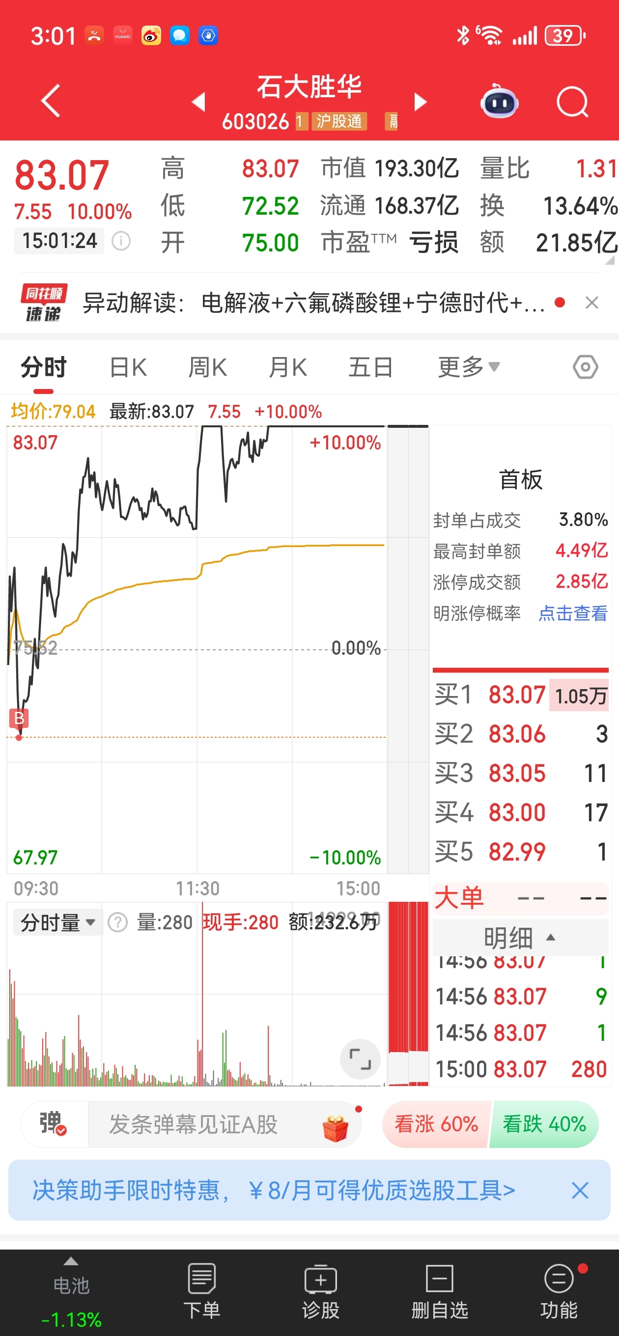 $石大胜华(SH603026)$